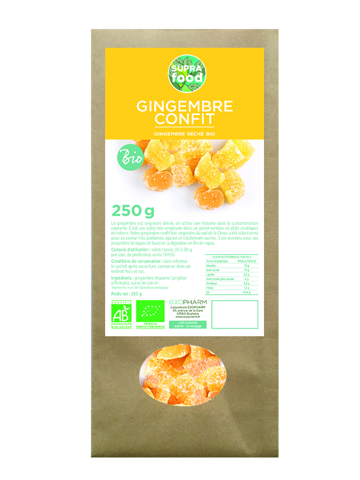 indiens. Notre gingembre confit bio, originaire du sud de la Chine, a été sélectionné