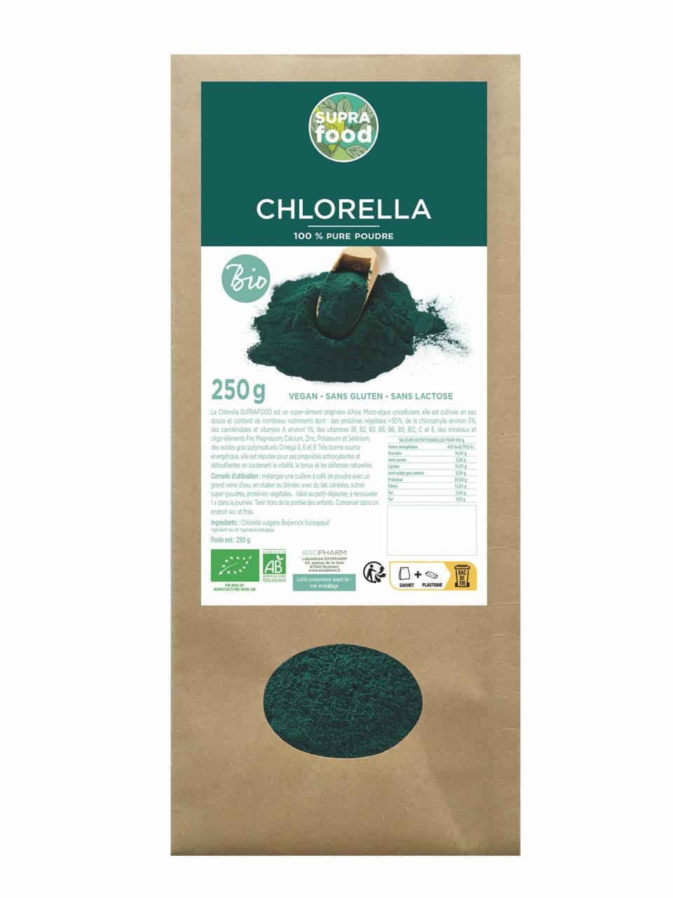 La chlorella bio en poudre est une micro-algue d’eau douce reconnue pour sa richesse en protéines végétales, chlorophylle et nutriments essentiels. Ce super aliment naturel est apprécié pour accompagner la vitalité et le tonus au quotidien.
